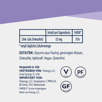 • Schnellere Aufnahme: Vimergy Zink ist als Flüssigkeit formuliert, um eine schnellere Aufnahme im Vergleich zu festen Formen zu ermöglichen.