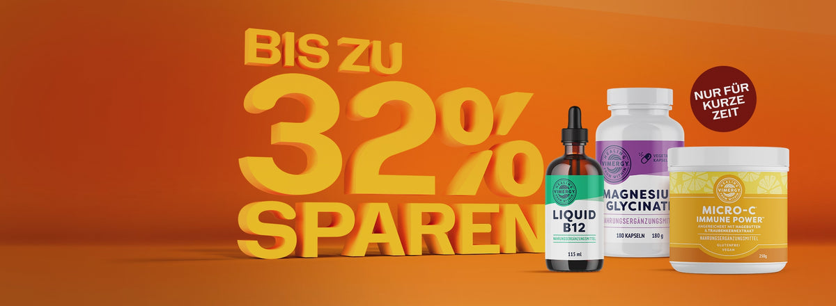 Es gelten die Allgemeinen Geschäftsbedingungen. Angebot gültig vom 20. November 2025 bis zum 28. November 2025. Kund:innen erhalten 15 % Rabatt auf alle Refill- und Vorteilspackungen. Beim Kauf von Mix + Save-teilnahmeberechtigten Produkten erhalten Kund:innen insgesamt bis zu 20 % Rabatt. Wer 250 € oder mehr ausgibt, erhält ein kostenloses Seasonal Immunity Kit (Soothe Wise* und 3 WellMix Gläser). Das Seasonal Immunity Kit ist nur in begrenzter Stückzahl verfügbar und wird nach dem Prinzip „Wer zuerst kommt, mahlt zuerst“ automatisch zu berechtigten Bestellungen hinzugefügt. Rabatte und das kostenlose Seasonal Immunity Kit werden automatisch im Checkout angewendet. Mix + Save gilt nur für Full-Size-Packungen (der Rabatt variiert je nach Anzahl unterschiedlicher Full-Size-Packungen in der Bestellung); Mix + Save gilt nicht für Travel-, Refill- oder Vorteilspackungen oder Kits. Rabatte können mit Sign Up + Save kombiniert werden – für insgesamt bis zu 36 % Ersparnis. Der Rabatt kann nicht auf mehrere Bestellungen aufgeteilt werden. Gültig nur auf vimergy.com, vimergy.co.uk und vimergy.eu. Nicht gültig für Abo-Bestellungen. Nicht gültig in anderen Shops, die VIMERGY-Produkte führen. Keine Anwendung auf vorherige Bestellungen. Keine Preisnachlässe rückwirkend. Weitere Bedingungen können gelten. Nur solange der Vorrat reicht.