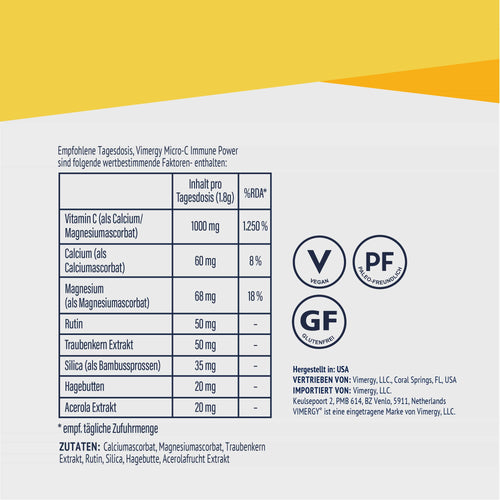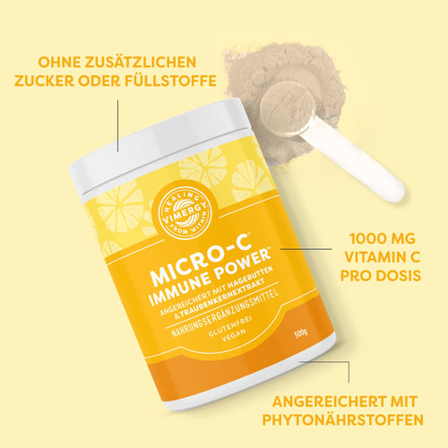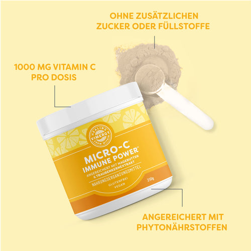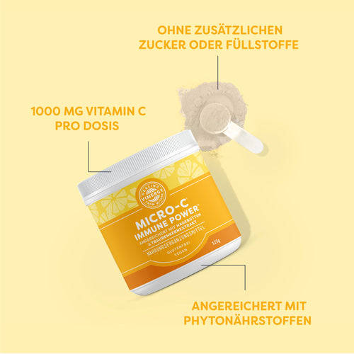 Vitamin C bietet wichtige Vorteile für das Immunsystem, einschließlich der Unterstützung robuster Immunzellpopulationen und einer effizienten Immunfunktion.
