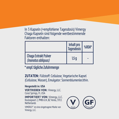 Vimergy Chaga ist standardisiert auf das Pilz-Polysaccharid Beta-Glucan, das bekannt dafür ist, die Gesundheit des Immunsystems zu unterstützen.