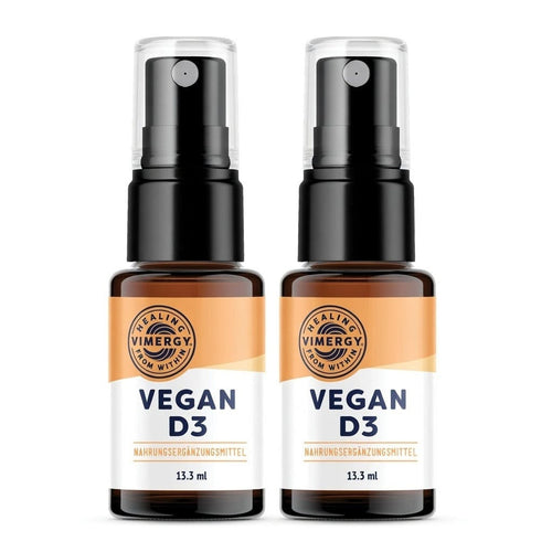 Vimergy Vegan D3 ist eine hochwertige, wirksame Vitamin-D3-Quelle. Vimergy Vegan D3 verwendet hochwertiges MCT-Öl, um volle 1000 IE veganes Vitamin D3 pro Portion zu liefern . Vitamin D3 ist eines der wenigen Vitamine, die fettlöslich sind , was bedeutet, dass sie Fett zur Aufnahme benötigen . Die Kombination von veganem Vitamin D3 mit MCT-Öl vereint sowohl das Vitamin als auch die benötigten Absorptionsnährstoffe, um die Aufnahme dieses wichtigen Nährstoffs vollständig zu unterstützen .