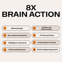 Wirkt auf 8 Arten, um die Gehirnaktivität zu fördern: unterstützt Energie und Stoffwechsel im Gehirn, fördert die Bildung von Gehirnzellen, verbessert die neuronale Kommunikation, reduziert Müdigkeit und mehr.