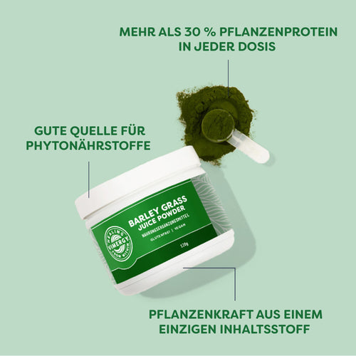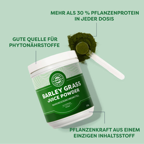 Gerstengrassaft enthält keine Fasern, die die Aufnahme und Bioverfügbarkeit beeinträchtigen könnten, und ist eine Quelle für hoch bioverfügbare nützliche Phytonährstoffe wie Chlorophyll und Bioflavonoide.