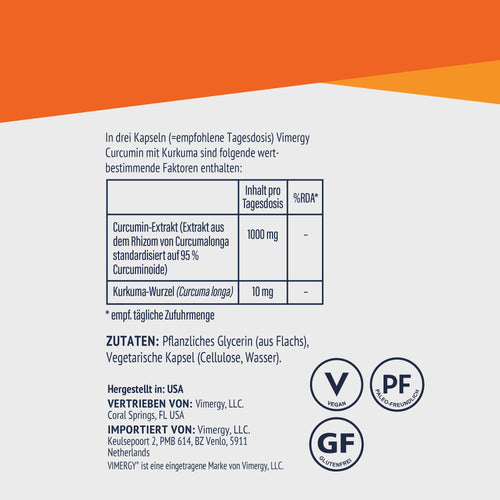 Vimergy Curcumin mit Kurkuma ist eine spezielle Flüssigformel in einer veganen Kapsel ohne Geliermittel. Dies bietet den Vorteil einer Flüssigkeit in der praktischen Anwendung einer Kapsel.