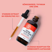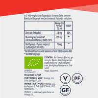 Vimergy Total Immune BlendTM kombiniert die bewährten Kräuter Spitzwegerich und Thymian mit kraftvollem flüssigem Zink, um das ganze Jahr über antioxidativen Immunabwehr zu bieten.