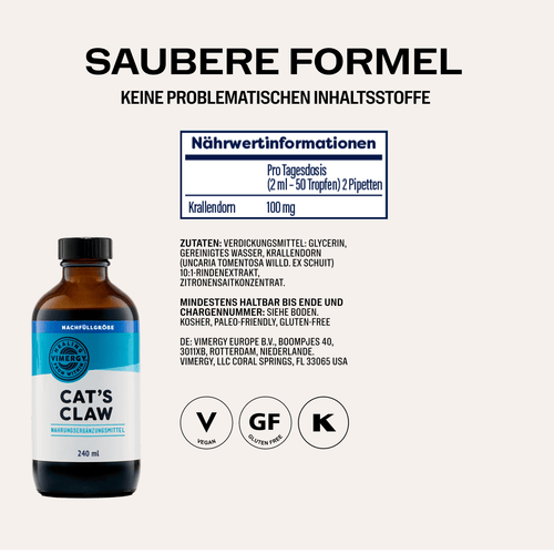 Cat’s Claw ist reich an sekundären Pflanzenstoffen und bietet antioxidative Unterstützung bei alltäglichen Belastungen.