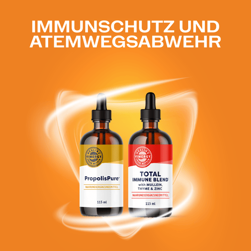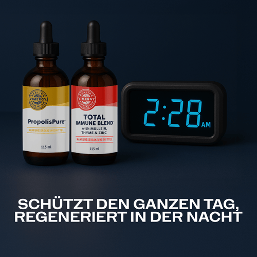 PropolisPure® am Tag. Total Immune Blend* in der Nacht. Rund-um-die-Uhr-Halsberuhigung und Immununterstützung.