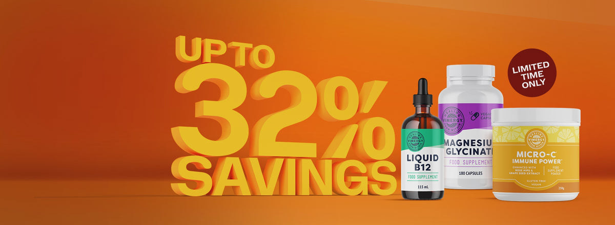 Terms and Conditions Apply. Offer valid November 20, 2025, to November 28, 2025. Customers will receive a discount of up to 20% on all Mix+Save eligible packs and 15% on select Refill & Value packs. Customers who spend €250 or more will receive a free Seasonal Immunity Kit (Soothe Wise* and 3 WellMix Glasses). Seasonal Immunity Kit is available in limited quantities and will be automatically added to eligible orders on a first-come-first served basis. Discounts and Free Seasonal Immunity Kit are applied at checkout. Mix+Save offer applies to Full-Size packs (discount % varies based on number of unique Full-Size packs included in the order); Mix+Save discount is not applicable on Travel, Refill, or Value packs, or Kits. Mix+Save discount may be stacked with Sign Up+Save for a total of up to 36% savings. Discount cannot be combined across multiple orders. Offer only valid at vimergy.com, vimergy.co.uk, or vimergy.eu. The offer does not apply to scheduled subscription orders. Offer not valid at any other store that carries VIMERGY products. Not applicable on previous purchases. No price adjustments. Additional terms and conditions may apply. Offer valid while supplies last, no rainchecks. Not applicable on previous purchases. No price adjustments. Additional terms and conditions may apply.
