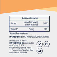 Vimergy Vegan D3 is a high quality, potent source of vitamin D3.Vimergy Vegan D3 uses high quality MCT oil to bring a full 1000iu of vegan vitamin D3 per serving. Vitamin D3 is one of a handful of vitamins that are fat-soluble, meaning they require fat for absorption.