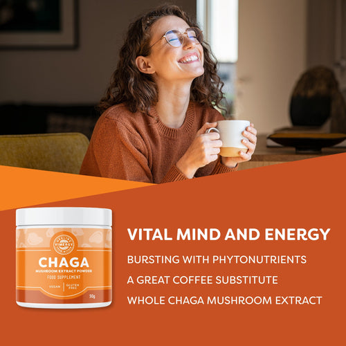 Vimergy Chaga is bursting with polyphenols which support many aspects of health.