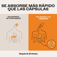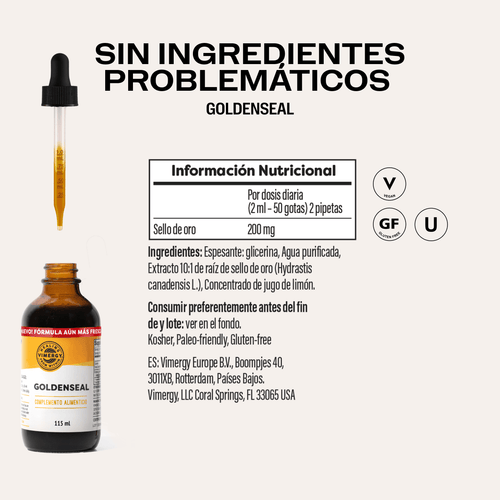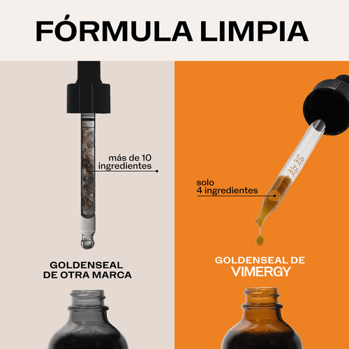El Goldenseal líquidoorgánico de VIMERGYahora se elabora con un nuevo extractomás fresco, procesadoexclusivamente para Vimergy y con la mismapotenciaenunafórmula de rápidaabsorción.