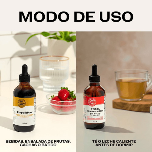 PropolisPure® durante el día. Total Immune Blend* por la noche. Alivio continuo para la garganta y apoyo inmunitario constante.