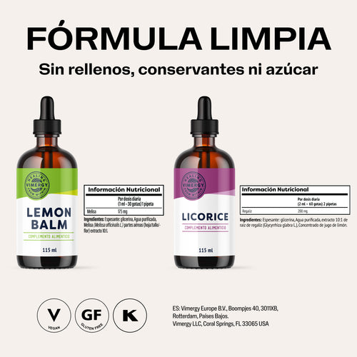 La melisa se usa tradicionalmente para aliviar molestias gastrointestinales leves como hinchazón y flatulencias; el regaliz ayuda a calmar las molestias digestivas, como la gastritis.