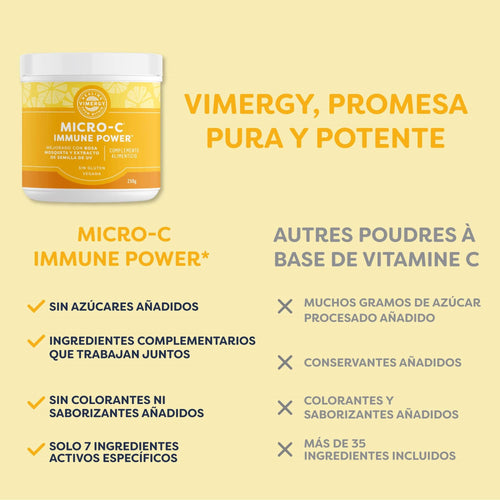 Vimergy Micro-C Immune Power™* is a potent, benefit-packed formula. Each serving is loaded with 1000 mg of gentle vitamin C, plus 5 complementary phytonutrients including bamboo silica to support collagen production.