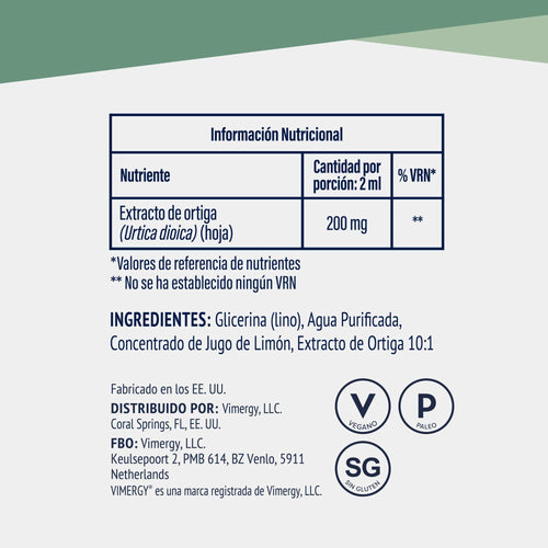 Vimergy Nettle extract is a special liquid vegan supplement. It is made with just 4 familiar ingredients: nettle extract, flax glycerin, lemon juice concentrate, and pure water.