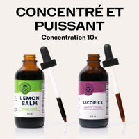La mélisse est traditionnellement utilisée pour soulager les troubles gastro-intestinaux légers, notamment les ballonnements et les flatulences, tandis que la réglisse aide à apaiser l’inconfort digestif, comme la gastrite.