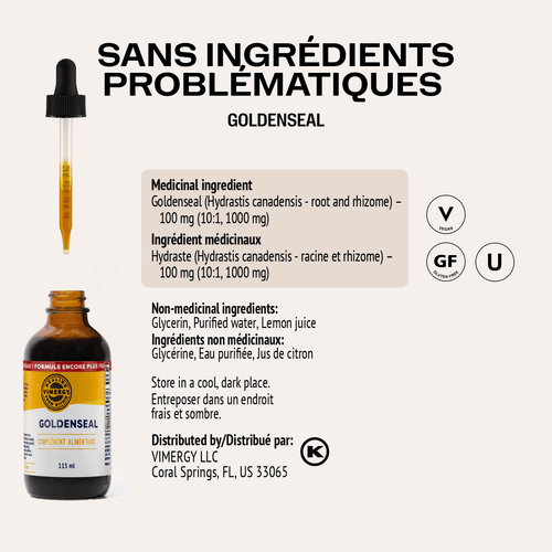 Deux pipettes fournissent l’équivalent de 2000 mg de racine entière de goldenseal – à chaque dose.