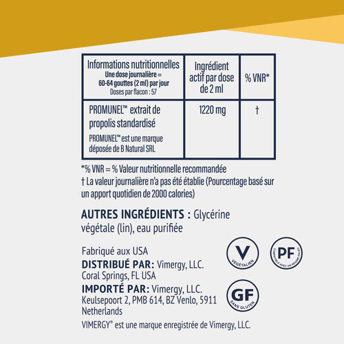 PropolisPure® de Vimergy est soigneusement extrait et standardisé à 6 polyphénols différents. Cela aide à produire un produit final avec une composition en polyphénols consistante et une biodisponibilité améliorée.*