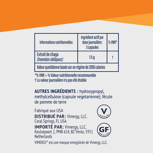 Vimergy Chaga est standardisé en polysaccharide de champignon bêta-glucane qui est connu pour soutenir la santé immunitaire.