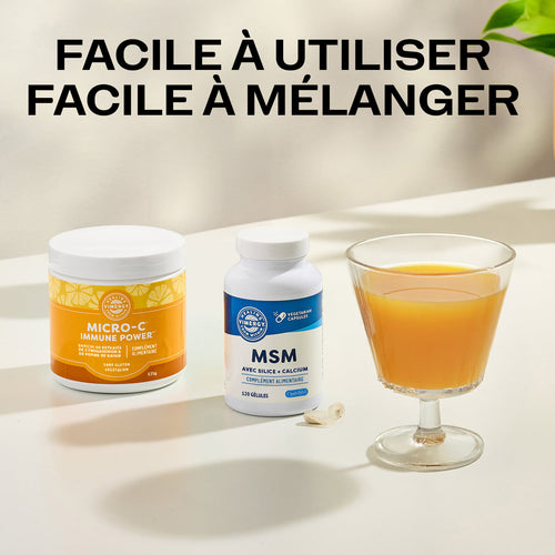 Avec Micro-C Immune Power™* et MSM pour favoriser la production de collagène, et maintenir une peau lisse et résistante, ainsi que des cheveux et ongles en bonne santé.