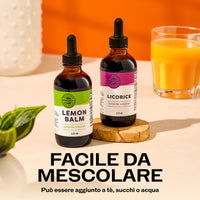 La melissa è tradizionalmente usata per alleviare lievi disturbi gastrointestinali come gonfiore e flatulenza, mentre la liquirizia aiuta a lenire i fastidi del tratto gastrointestinale, come la gastrite.