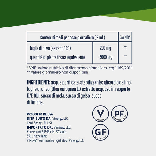 L'estratto di foglie di ulivo Vimergy è standardizzato a >20% di oleuropeina, uno speciale fitonutriente con ampi benefici antiossidanti e per la salute.*