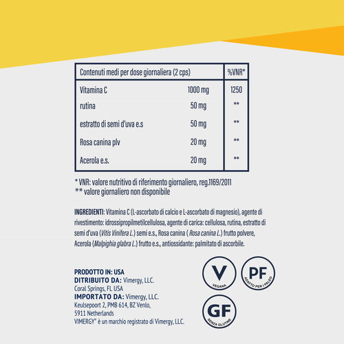 La vitamina C offre benefici chiave al sistema immunitario, tra cui la promozione di un numero adeguato e di un'attività funzionale delle cellule immunitarie per garantire una risposta robusta e un recupero resiliente.