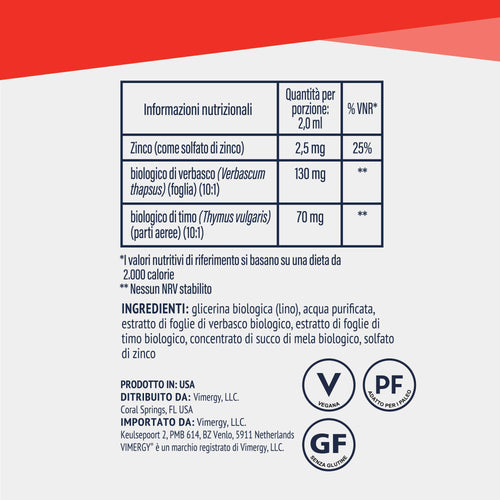 Ogni stagione è la stagione delle difese immunitarie. Vimergy Total Immune BlendTM fornisce una difesa immunitaria dinamica durante tutto l'anno, non solo nei mesi invernali! Contiene solfato di zinco liquido, una forma clinicamente studiata per essere 2 volte più biodisponibile delle compresse standard di solfato di zinco.