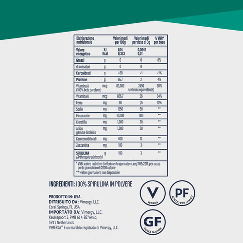 La spirulina è ricca di potenti fitonutrienti come la clorofilla per fornire benefici antiossidanti e supporto cellulare.
