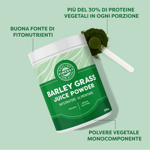 Il succo di erba d'orzo non contiene fibre che possono influire sull'assorbimento e sulla biodisponibilità ed è una fonte di fitonutrienti benefici altamente biodisponibili come clorofilla e bioflavonoidi.