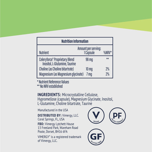Vimergy Celeryforce contains a proprietary blend to support cellular function.