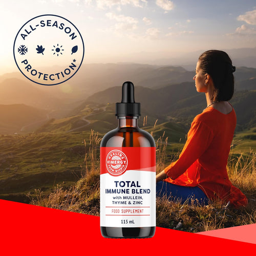 Vimergy Total Immune BlendTM combines time-tested herbs Mullein and Thyme with powerful liquid zinc to provide antioxidant immune defense all year long.